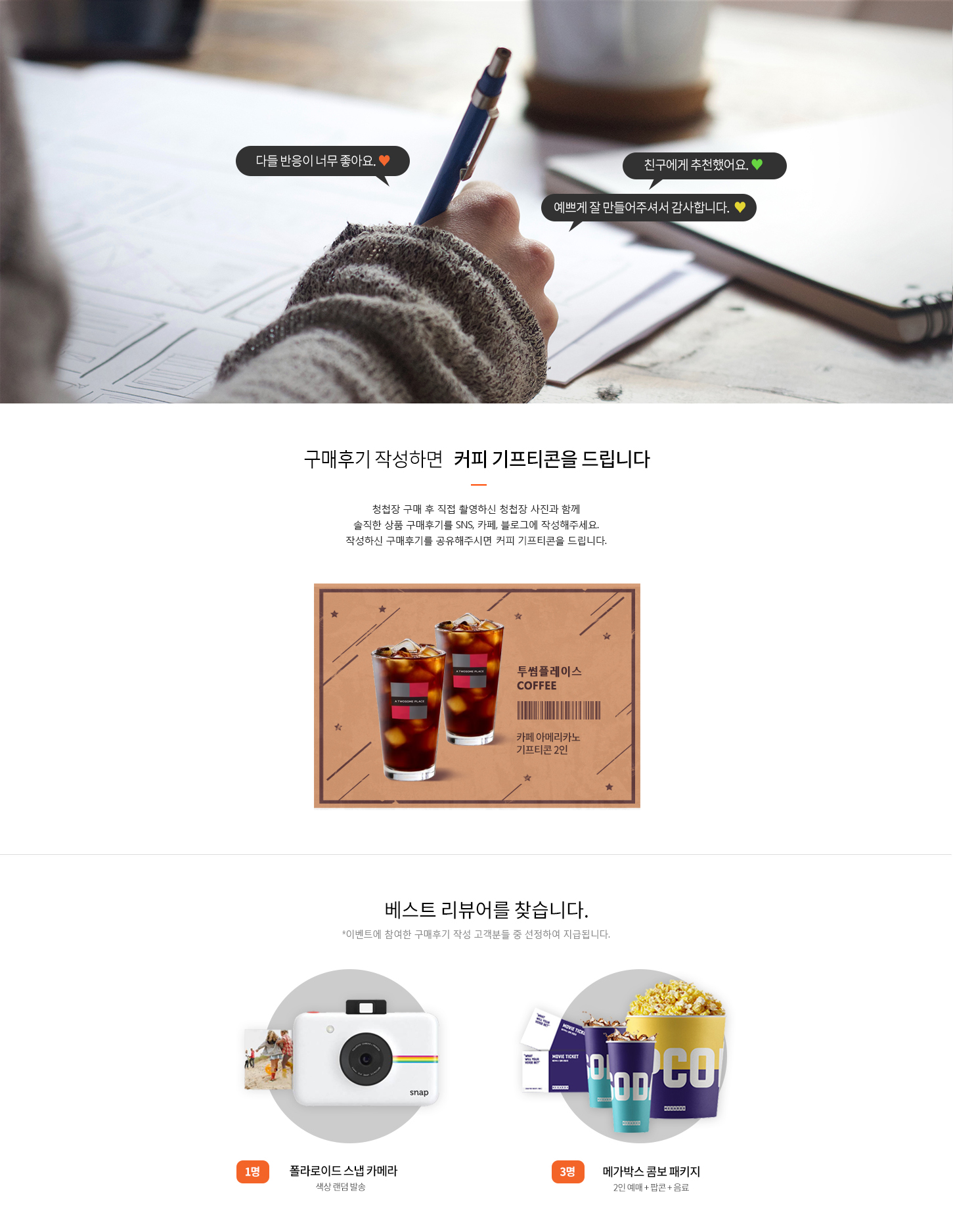 ±¸¸ÅÈıâ ÀÛ¼º¹ý °¨»çÀå, Ãß°¡ÁÖ¹®, ºÎ°¡»óǰ,ºÎ°¡¿É¼Ç »óǰ ±¸¸Å´Âº» À̺¥Æ®¿¡ Á¦¿ÜµË´Ï´Ù À̺¥Æ® üũ»çÇ× ÀÛ¼ºÁ¶°ÇÀ» ÃæÁ·ÇÏÁö ¾ÊÀ¸¸é »óǰ Áö±ÞÀÌ ºÒ°¡Çϸç, ÀÛ¼ºÇϽŠ±Û¿¡ ¹Ì¹ß±Þ »çÀ¯¸¦ ¾È³»Çص帳´Ï´Ù. ¿þµù Ä«Æä¸¦ ÅëÇØ Èıâ ÀÛ¼º ½Ã, [½Ã*Ä«µå, ½Ã¼ÒÄ«* ]µîÀ¸·Î Ç¥±âÇØ¾ß Çϸç, Á÷Á¢ÀûÀÎ ¾÷ü¸í ³ëÃâ½Ã °Ô½Ã¹°ÀÌ »èÁ¦µÉ¼öÀÖ½À´Ï´Ù. °³ÀÎ ºí·Î±×¸¦ ÅëÇØ Èıâ ÀÛ¼º½Ã [½Ã¼ÒÄ«µå] ´Ü¾î´Â ²À µî·ÏÇØÁÖ¼¼¿ä. ±¸¸ÅÈıâ ÀÛ¼º ÈÄ °ü¸®ÀÚ ½ÂÀνà 2ÁÖ ÈÄ È¸¿øÁ¤º¸¿¡ ÀÖ´Â ÇÚµåÆù ¹øÈ£·Î ¹®ÀÚ ¹ß¼Û µË´Ï´Ù. ±¸¸ÅÈı⸦ ÀÛ¼º½Ã °æÇ°À» ¼ö·É ÈÄ »èÁ¦ÇϽô ºÐµéÀÌ ¸¹¾Æ 2ÁÖ ÀÌ»ó À¯ÁöµÈ Èı⸦ ´ë»óÀ¸·Î °æÇ°À» µå¸³´Ï´Ù. (Áö±ÞÀÏ : ¸Å¿ù ¸»ÀÏ / 2ÁÖ ¹Ì¸¸ÀÎ °æ¿ì ÀÍ¿ù ¸»ÀÏ Áö±Þ) º£½ºÆ®¸®ºä °æÇ°Àº ¼±Á¤µÈ ¸®ºä°¡ ¾ø´Â °æ¿ì ´ç÷ÀÌ ¾øÀ» ¼ö ÀÖ½À´Ï´Ù. º» À̺¥Æ®ÀÇ ±âÇÁƼÄÜÀº ID´ç Çѹø¸¸ ¹®ÀÚ¹ß¼Û µË´Ï´Ù. º» À̺¥Æ®´Â ´ç»ç »çÁ¤¿¡ µû¶ó »çÀü °íÁö ¾øÀÌ º¯°æ, Á¾·áµÉ ¼ö ÀÖ½À´Ï´Ù. ±¸¸ÅÈıâ´Â ȸ¿øÀÎ »óÅ¿¡¼ ÁÖ¹®ÇÑ »óǰ¸¸ ÀÛ¼º °¡´ÉÇÕ´Ï´Ù.